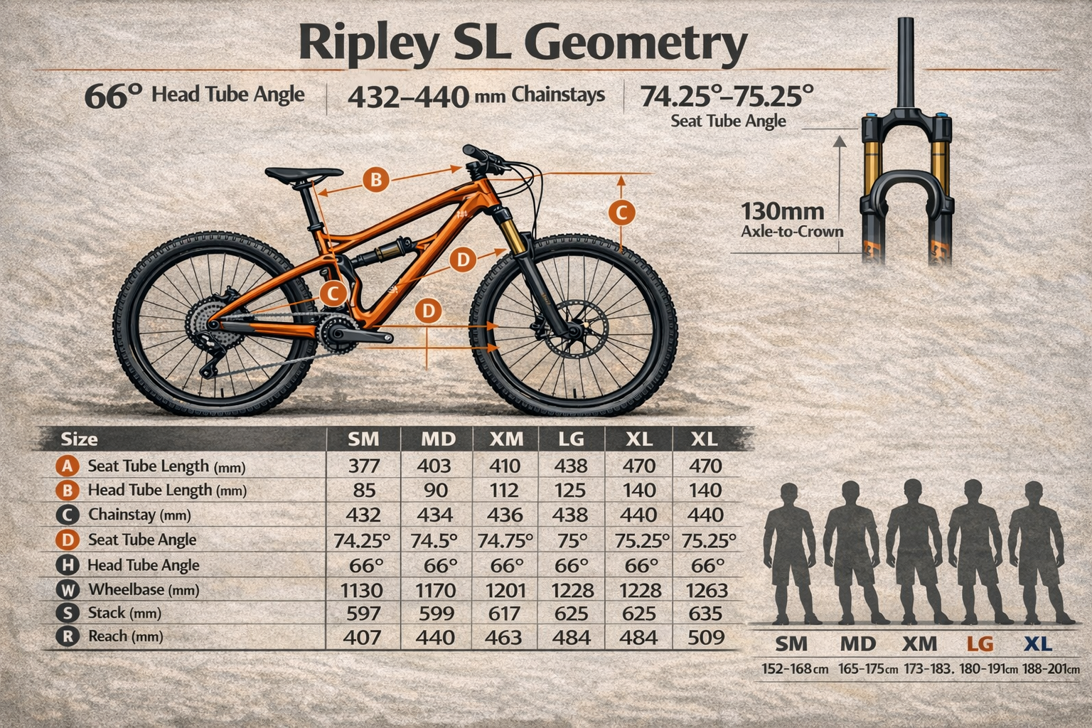 *BB-höjd anges med Maxxis 29×2.4 WT-däck (= 748 mm diameter).