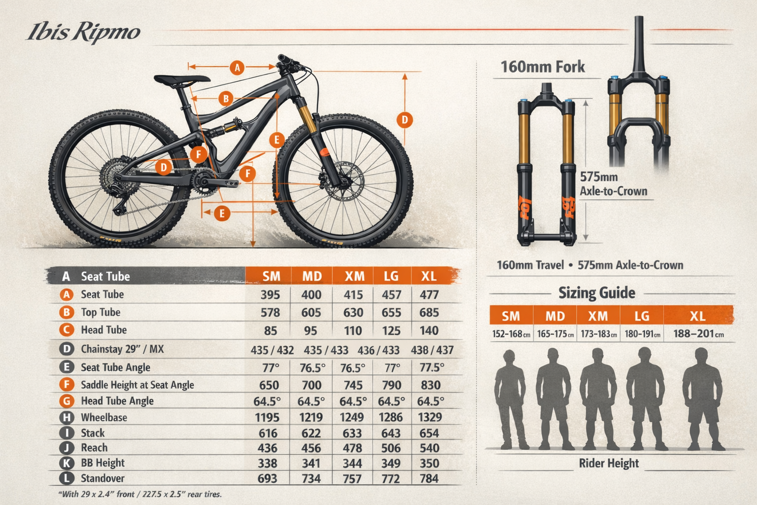- Run 29” or mixed wheels (27.5” rear / 29” front) on all sizes