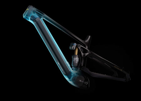 Kolfiber-monocoque-chassit kombinerar en mid-pivot-layout, flip-chip för bakhjulet, flip-chip för dämparposition och integrerad batteriförpackning. Resultatet är en cykel som känns specialbyggd för aggressiv körning samtidigt som den levererar räckvidd hela dagen och raffinerad integration.