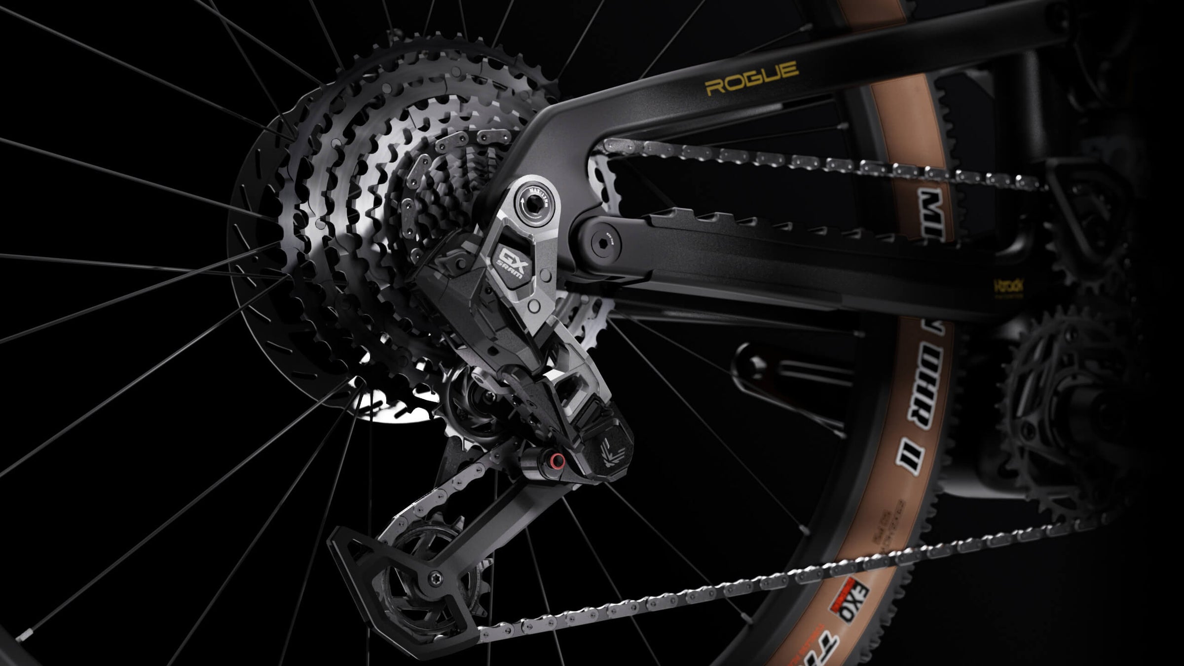 Möt Rogue R. Konstruerad för den ultimata MX Enduro-upplevelsen, med specialinställd FOX-fjädring, SRAM AXS GX Eagle 10-52T-transmission och kraftfulla Maven Silver fyrkolvsbromsar.